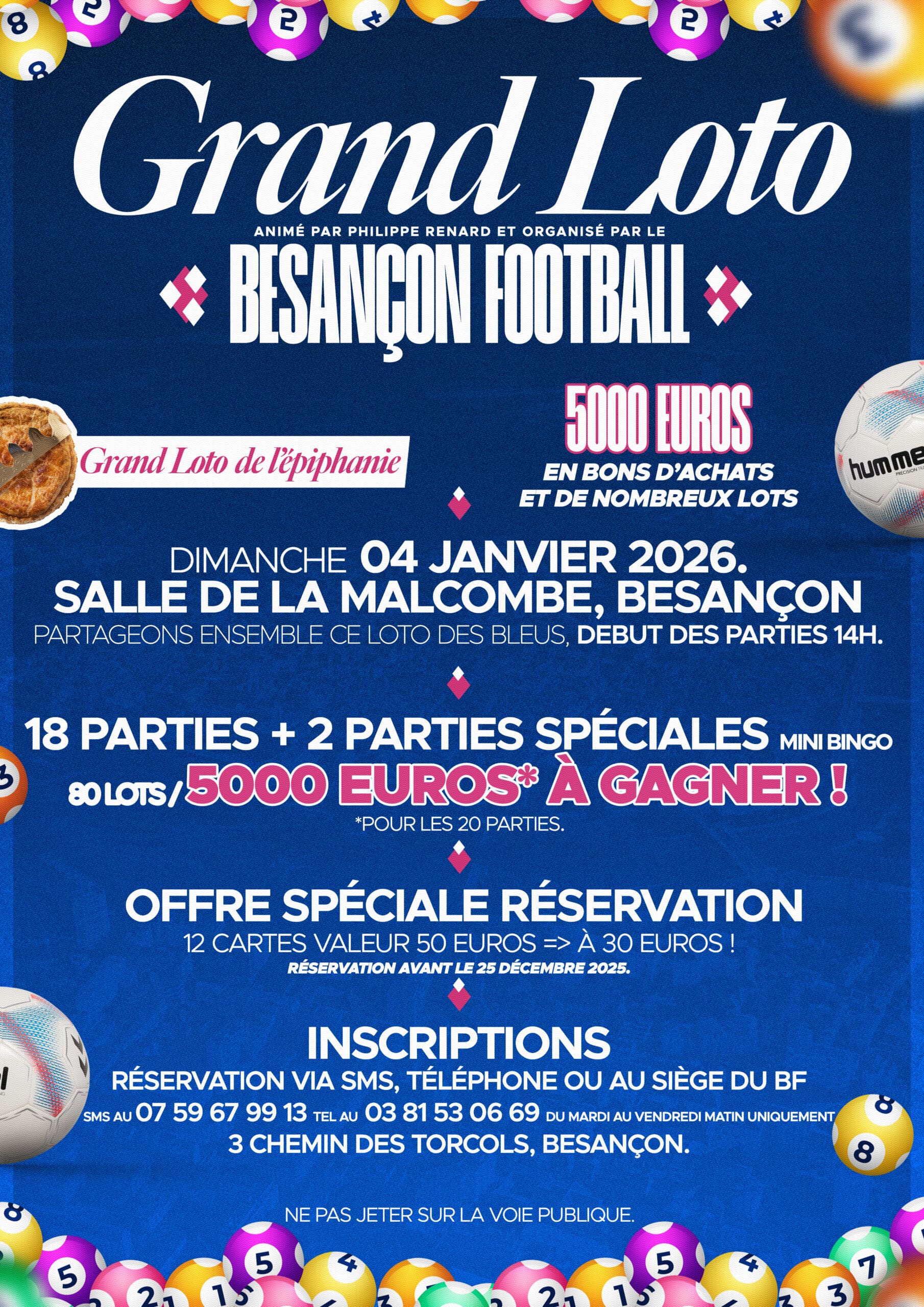 Le Besançon Football organise son Grand Loto de l’Épiphanie le dimanche 4 janvier 2026 à la Salle de la Malcombe à Besançon !